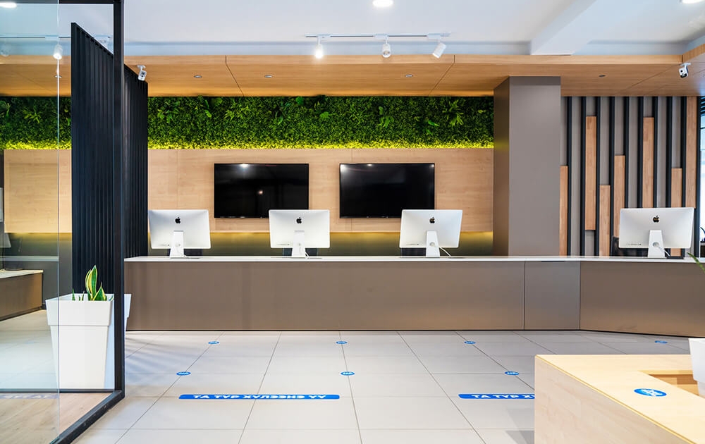 Анхандаа ургамлаар чимсэн хананууд бүгд амьд ургамлаар хийгдэх байсан. Харин ажиллагаа бас цаг хугацаа их зарцуулагдах учир хиймэл ургамлаар орлуулсан юм. Харин дараа нь яагаад ч юм амьд ургамлаар ханаа чимэглэж чадаагүйдээ “гэмшээд” янз бүрийн тасалгааны ургамал олныг авсан (инээв). Манай оффист жижиг, том гээд 40 гаруй төрлийн тасалгааны ургамал бий.