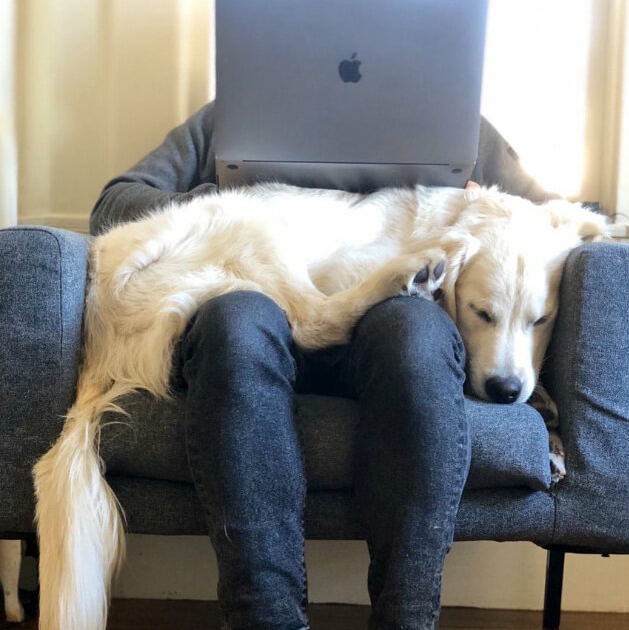#6 Ширээ олдохгүй болохоор өвөр дээрээ нөүтбүүкээ тавиад буйдан дээрээ тухласан юм. Харин нохой маань хэвтэх дуртай хэсэг нь завгүй болсонд дургүй байна.