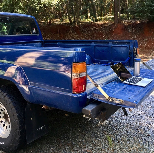 #7 Гадаа цаг агаар сайхан байгаа учир би ачааны машиныхаа тээшийг ажлын ширээ болгочихлоо.