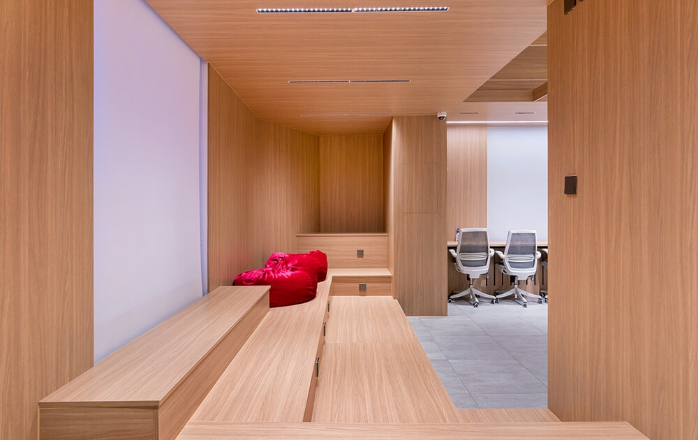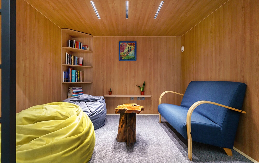 Амралтын хэсэг – Орчин үед ажлын бүтээмж, тав тухыг эрхэмлэсэн оффис интерьерийн тухай ойлголт хүмүүсийн дунд их түгээмэл болж, энэ чиглэлээр эрчимтэй хөгжиж байна. Тиймээс ажилчдад зориулан цайны цагийн дараа 30 минут орчим дуг хийж, ажлаас түр хөндийрч тархиа сэргээх, ном уншин тухлах хэсгүүдийг зориулан хийсэн.