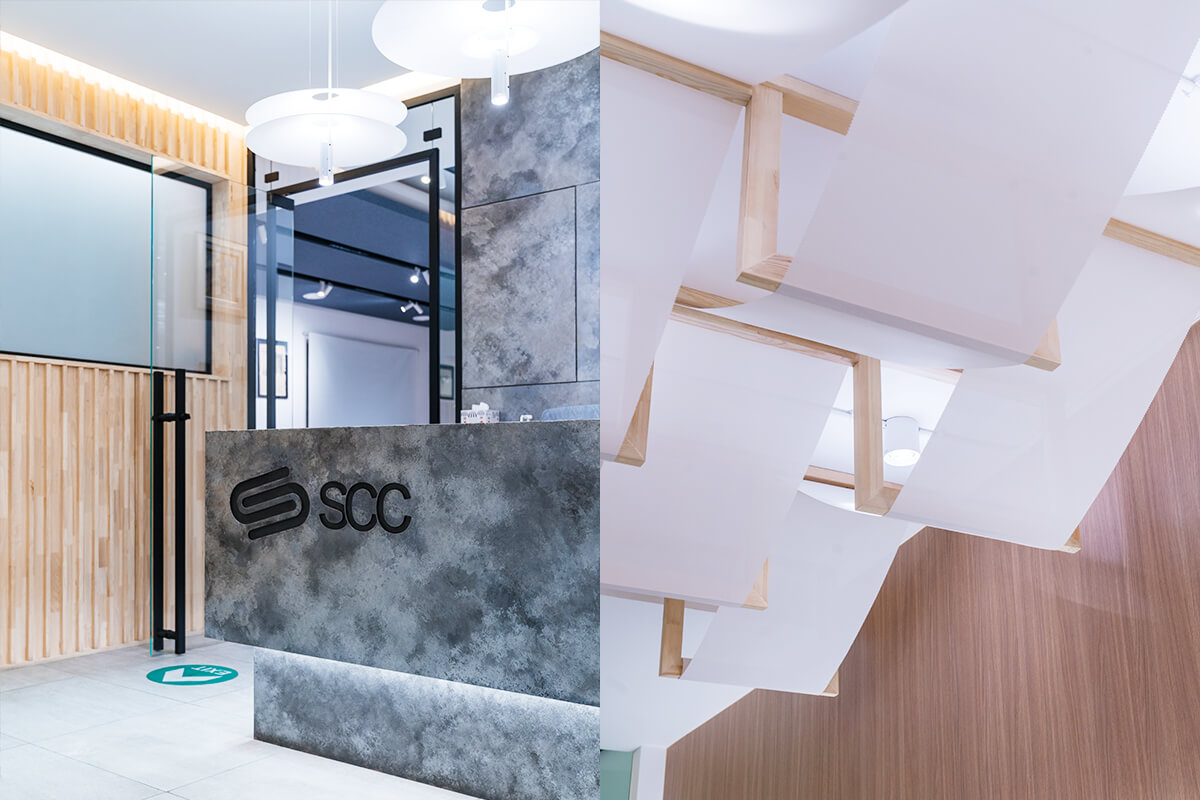 SCC LLC нь ажиллах хүч ханган нийлүүлэх буюу хүний нөөцийн зөвлөх үйлчилгээ үзүүлдэг тул бизнес уулзалтууд хийх, олон хүнтэй утсаар ярьж, шаардлагатай тохиолдолд видео дуудлага хийх нь элбэг учраас ажлын онцлогт тохирсон өрөөнүүдийг бий болгох шаардлагатай байсан. Эдгээр утасны бүхээг болгонд дуу тусгаарлагч, агааржуулагчийг зориулан гүйцэтгэсэн. Харин уулзалтын өрөөнд хоёр төрлийн уур амьсгалыг гэрлийн тусламжтай бүрдүүлэх боломжтой.