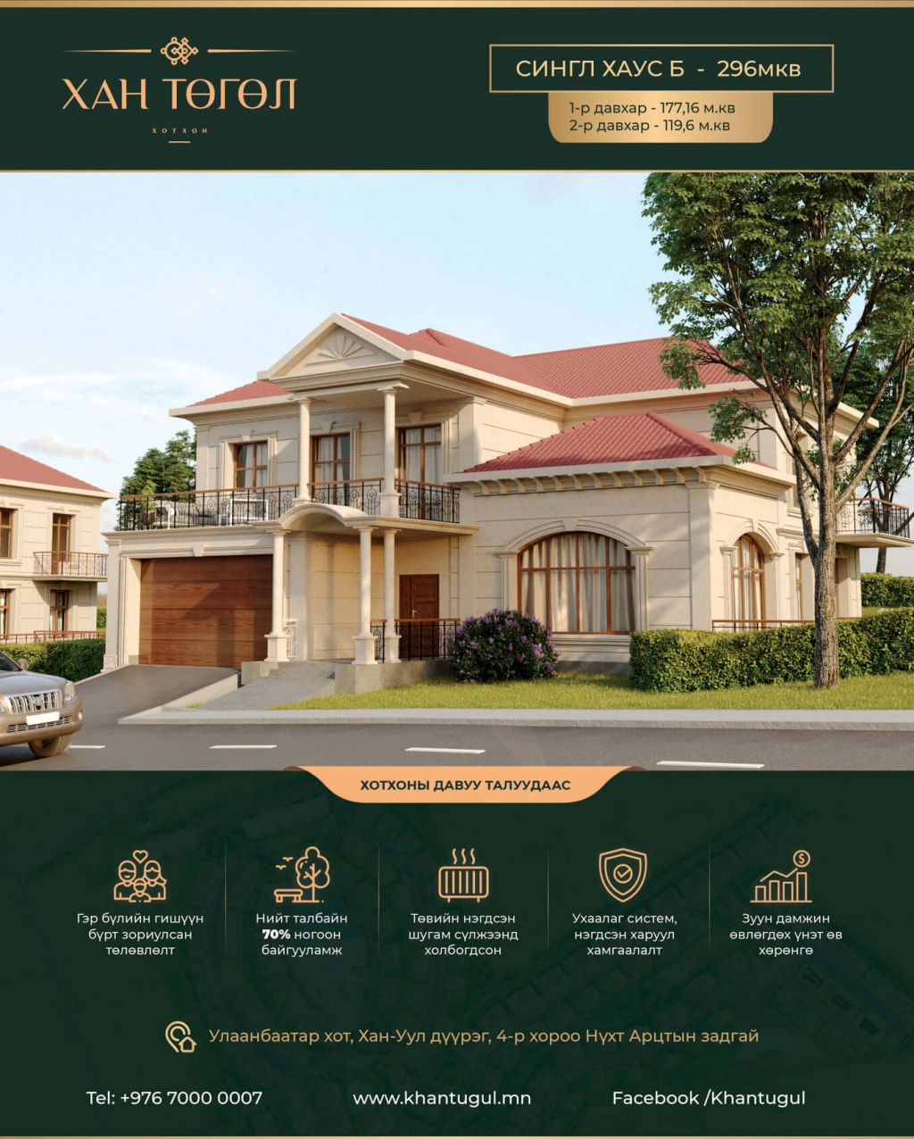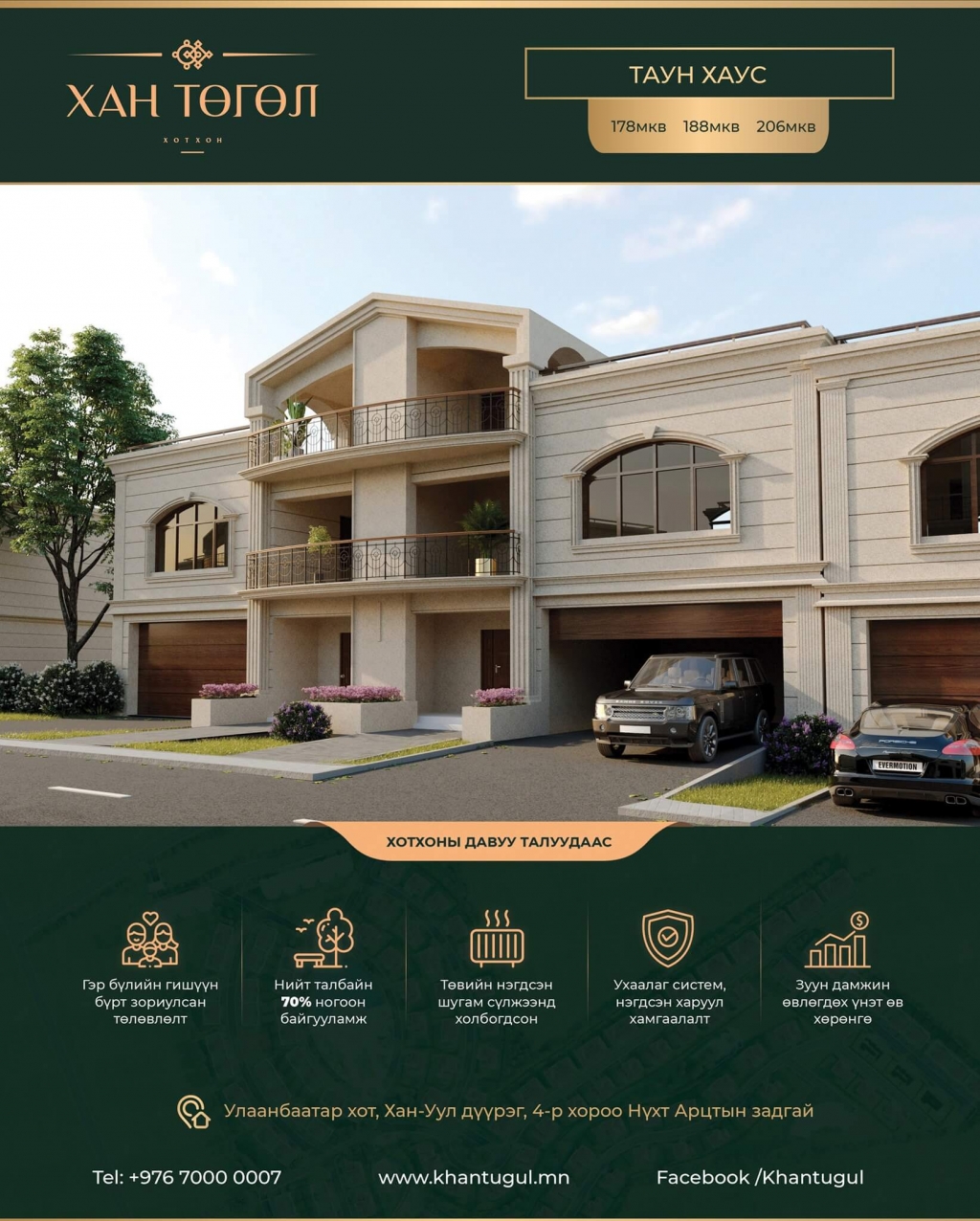 Байгальд ойр, нам гүм, амар тайван бас гэр бүлээрээ тав тухтай амьдрах орчин хайж байгаа бол Хан төгөл хотхон энэ бүхнийг хамгийн өндөр төвшинд хийж гүйцэтгэж байгааг онцлоё. Мөн айл бүрд хувийн эзэмшлийн талбай байхаас гадна дотоод төлөвлөлт танд гайхалтай сайхан сэтгэгдэл төрүүлнэ гэдэгт эргэлзэхгүй байна. Мэдээж үзэгдэх орчин, хотхоны ерөнхий төлөвлөлт цогц, нямбай төлөвлөгдсөн. Түүнчлэн, ус, дулаан, бохир, цахилгаан зэрэг бүгд төвийн шугамтай холбогдсон бөгөөд нэмэлт цахилгааны эх үүсгэвэртэй учир тав тухыг алдуулах зүйлгүй.