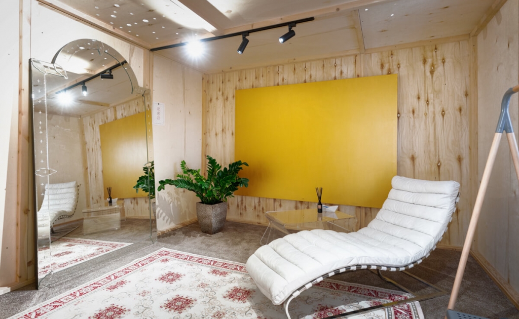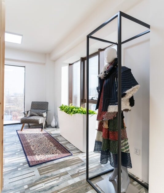 Хувцас солих өрөөнөөс хувцасаа өмсөөд алхахдаа өөрийгөө тайзан дээр буйгаар төсөөлж, үйлчлүүлэгч бүрийг өөртөө итгэлтэй, баяр баяслаар дүүрэн байгаасай хэмээн зорьсон сонирхолтой шийдэл.