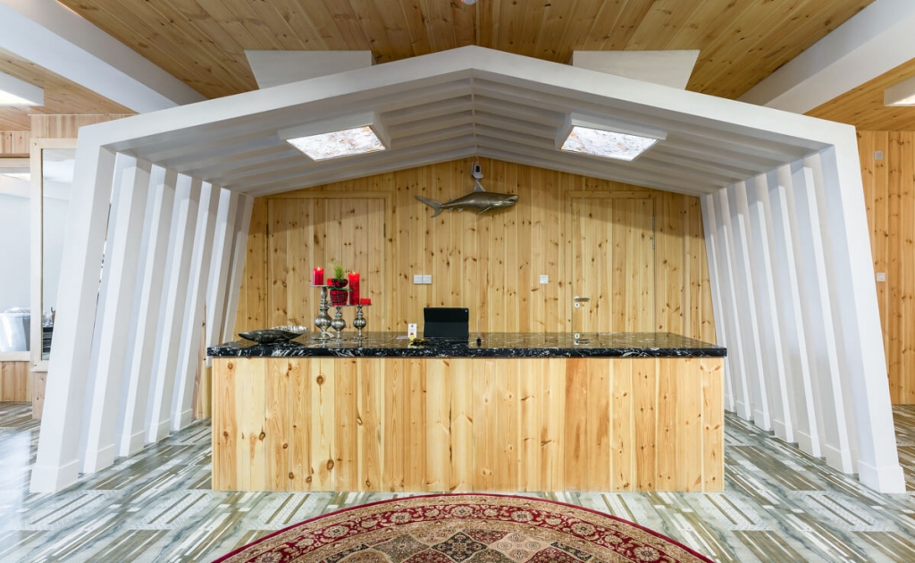 Амарч тухлах лобби хэсгийн таазан дээрх моднууд нь монгол гэрийн унийг төлөөлүүлж хийсэн мэт. Ингэснээр орон сууцанд бус монгол гэрт буй мэт сэтгэгдлийг төрүүлнэ. Түүнчлэн ханан дахь BABA брендийн гутлын тавиурыг гурван ширхэг хөндлөн байрлуулж монгол гэрийн бүслүүрийг төлөөлүүлжээ. Монголын хамгийн сайн сайхан бүхнийг үйлчлүүлэгчдээ үнэхээр мэдрүүлэхийг зорьсон нь деталь бүрээс анзаарагдах болно.
