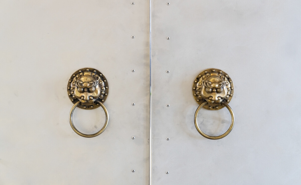 Зохиогчийн эрхээр хамгаалагдсан энэхүү хаалга нь хүндтэй зочидтой мэндэлж, угтахаас гадна хаалганы улаан өнгө нь өөдлөн дэвжих, бат бөх урт удаан хүчирхэг байхын бэлгэдэл. Шүр нь атаа жөтөө, хар хор сэтгэлийг арилгаж, муу бүхнээс хамгаалдаг чулуу билээ. Тиймээс уг хаалгаар орохдоо цэвэр ариун сэтгэлийг өвөртөлж орж байгаа гэдгийг бэлгэджээ. Хаалга бол бүхний эхлэл угтан авах хэсэг учир хаалгаар орж буй хүн бүртэй хөөрөг зөрүүлэн мэндэлж буй утгатай.