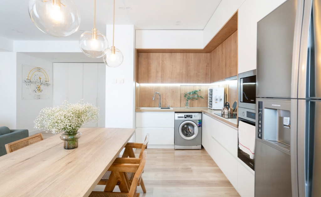 Манайд ер нь бодож шийдсэн деталиуд их юм байна. Зурагтын хэсгийн утас, залгуурыг далд болгож маш цэвэрхэн шийдэхийг хичээсэн. Шугам хоолойн ил харагддаг хэсгүүдийг гипсэн ханаар хаасан. Харин угаалгын өрөөний хаалгаа ханатайгаа ижил харагдуулах үүднээс ижилхэн өнгөөр дотроос нь будсан юм. Гаднаас харахад ерөнхий суурь өнгөтэй мөн ижил цагаан байхаар шийдсэн. Мөн хананаасаа шууд гардаг холигчийг нэлээн төлөвлөж байгаад шийдсэн. Гүйцэтгэж байгаа хүмүүс их ажиллагаа ихтэй болдог гээд цааргалах тал байдаг юм билээ. Гэхдээ цоолоод дахиж холигчныхоо урдуур бөглөх гээд багагүй ажиллагаа орсон ч гэсэн их дуртай. Гал тогооны тавилгаа Umeco-оор хийлгүүлсэн. Тавиурыг их ухаалаг шийдэж өгсөн нь надад маш таалагддаг. Эмх цэгцтэй бас цэвэрхэн. ↓