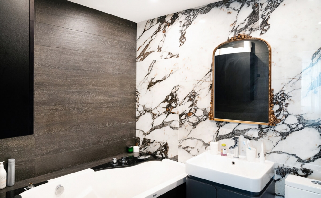 Харин энэ бол чулуун плита. Нимгэн учраас их хэврэг, амархан хагарах гээд байдаг эрсдэлтэй юм билээ. Мэргэжлийн хүмүүс ер нь шил, толь, плита зэргийг дотоодоосоо авахыг зөвлөж байсан. Ингэсэн нь хагарч гэмтэхгүй, харьцангуй эрсдэл багатай гэдэг. Энэ ариун цэврийн өрөөний плитан чулуу бага зэргийн хагараад хэсэгчлээд наачихсан байгаа нь энэ юм. Санаагаа бол тухайн үеийн тренд, бас өөрийн мэдрэмжээр хамгийн сайхан харагдаж байгаагаа сонгож тохижуулсан. Амьдарч байгаа орчин маань яг өөрийн хүслээр байх нь тухтай шүү. ↓