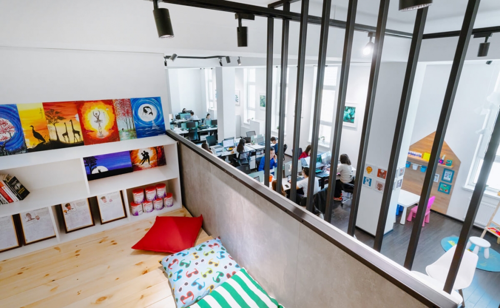 Өмнө хэлсэнчлэн гэр бүл болоод удаагүй, дөнгөж ажил амьдралын гараагаа эхэлж байгаа ихэвчлэн залуучууд энд ажилладаг. Зарим тохиолдолд ажилчид маань хүүхэд харах хүнгүй үед хүүхдээ оффис дээрээ авчирдаг. Тэр үед анзаараад байхад хүүхдүүд компьютер дээр бичлэг үзэх юм уу эсвэл аав ээжийнхээ гар утсаар тоглож байгаа харагддаг. Бага хугацааг ч гэсэн хүүхдүүд үр бүтээмжтэй байж, ээж аавууд нь санаа зоволгүй ажиллах боломжоор хангах зорилгоор энэ булангаа тохижуулсан юм. Манай оффист хамгийн их өнгө гэрэл, энерги нэмдэг булан хүүхдийн тоглоомын хэсэг шүү.