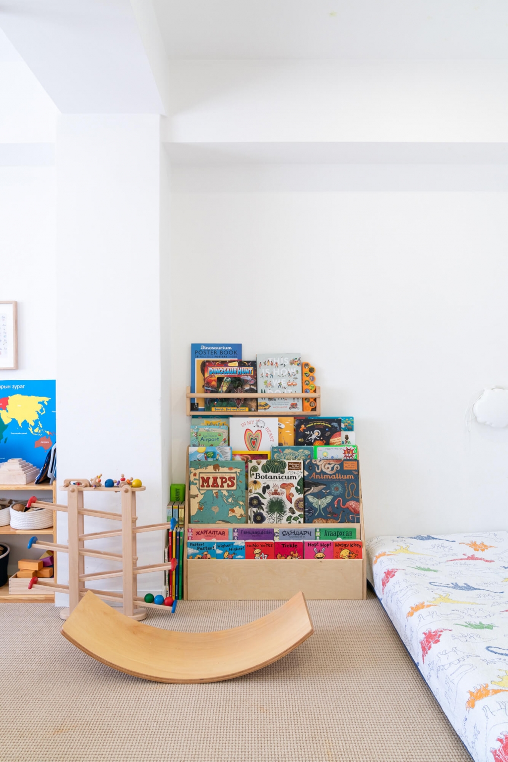 Хүүхдийн өрөө бол яахын аргагүй хүүхдийн хөгжил сэтгэхүйн онцлогт тохируулан өөрчлөгдөж байдаг юм билээ. Тэгэхээр хүүхдийн өрөө цаашид дахиад олон ч хувирах байх. Ойрын хугацаанд гэвэл биологи, газар зүй, дуу хөгжим, уран зураг гэх мэт шинжлэх ухаанч мэдлэг олгох зорилгоор постерууд нэмж өлгөхөөр төлөвлөж байгаа. Иймэрхүү зүйлс нүдэнд нь ойр байвал хүүхдэд хурдан цээжлэгдэнэ, тэдгээрийг өөрөө бие дааж судлах сэдэл болно гэдэг юм уу. Энэ утгаар нь хүүхдүүддээ аль болох хэрэгтэй зүйлсийг нэмж байрлуулна.