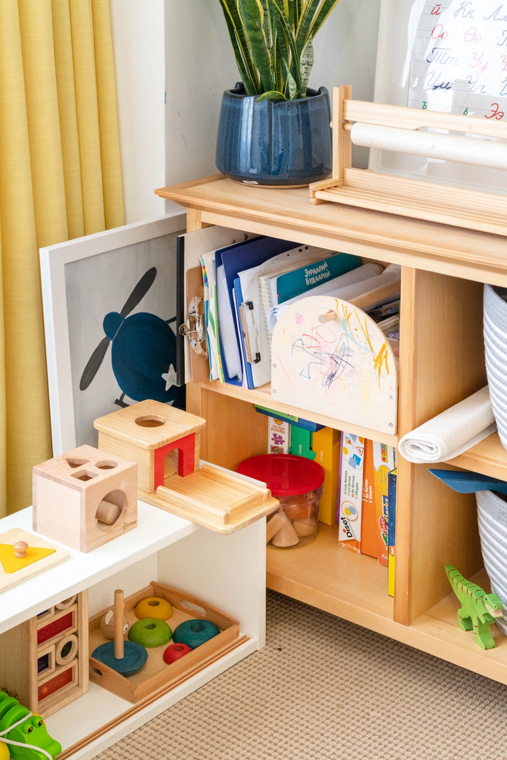 Өмнө нь бэлгэнд ирсэн, өөрсдөө эрхлүүлж авч өгсөн гээд хэтэрхий их тоглоомтой байлгаж үзсэн. Олон тоглоомтой байх тусам хүүхэд алийг нь ч тоохгүй, дэмий л баахан тараадаг юм билээ. Тэгэхээр үнэхээр хүүхдийнхээ тоглоомыг бодож сонгох нь чухал санагддаг шүү. Зөвхөн тоглодог хэдийг нь үлдээгээд бусдыг нь түр нууж мартуулж байгаад гаргаж тоглуулвал үр дүнтэй. Хөл хорионоос хойш хүүхдүүдтэйгээ илүү их цагийг өнгөрүүлж байгаа болохоор хүүхдээ илүү ажиглах боломж гарсан. Аль болох тоглоомын аргаар шинэ зүйлд сургаж, буруу зөвийн тухай ойлголт өгөхийг хичээж байгаа. Аюулгүй, хүүхэд өөрөө сэтгэн, төсөөлж тоглох боломжтой тоглоомуудыг сонгож өгдөг. Интерьерийн хувьд ч гэсэн модон тоглоом үзэмжтэй, цэгцтэй харагддаг.