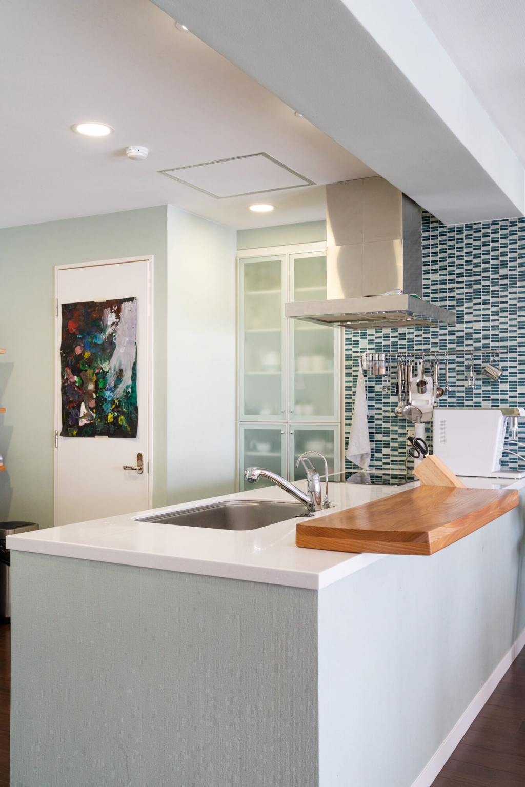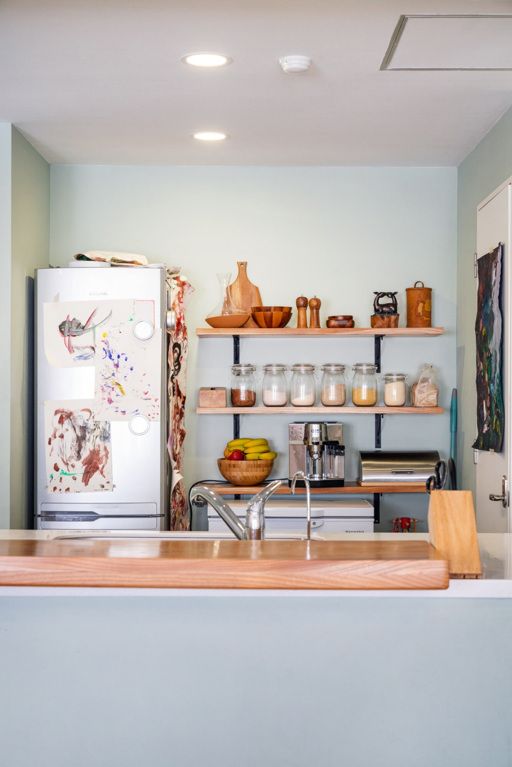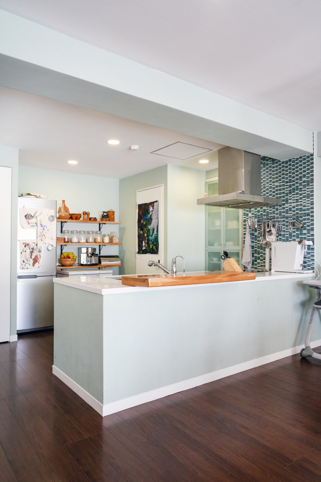 Зүгээр л цав цагаан эсвэл шаргал бор өнгийн цулгуй хана уйтгартай санагдсан учраас илүү залуулаг, гэхдээ зөөлөн өнгөтэй байлгахыг эрмэлзэж ханаа пастел өнгө сонгож будсан. Өмнө нь нэг хэсэг бүр хар өнгийн ханатай байж үзсэн юм. Зочны өрөөний нэг хана хар байхаар нэг тийм донжтой бөгөөд бусад эдлэлтэй нийлж шик харагддаг. Одоо бол илүү гэгээлэг, зөөлөн өнгө гэрт маань давамгайлж байгааг анзаарч болно.