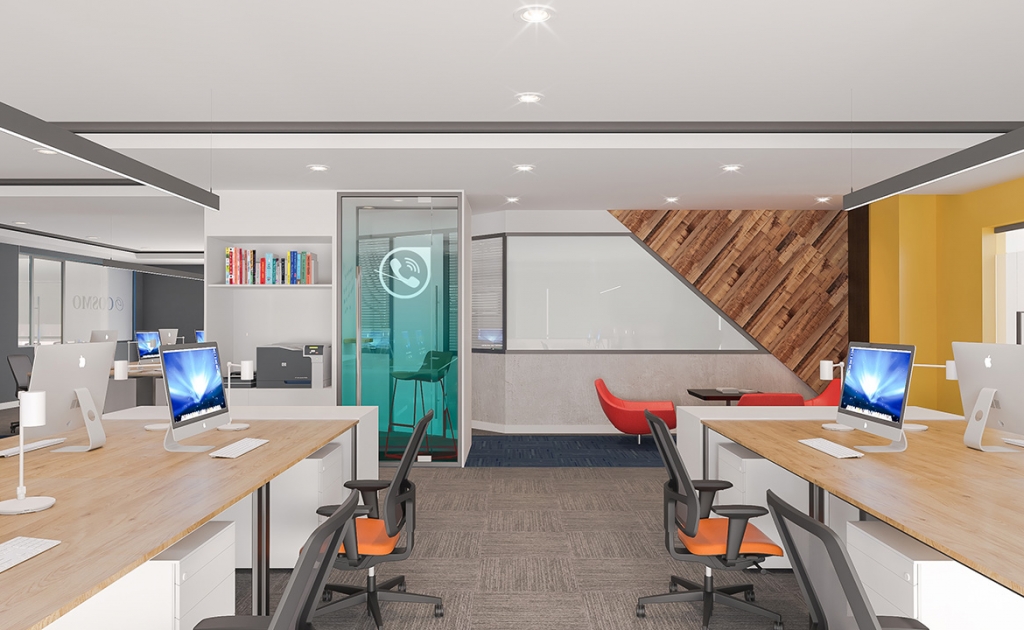 Ажилчдын оффис өрөөн дэх онцлох деталь бол бусдадаа саад болохооргүй утсаар ярихыг шийдэж өгсөн бүхээг