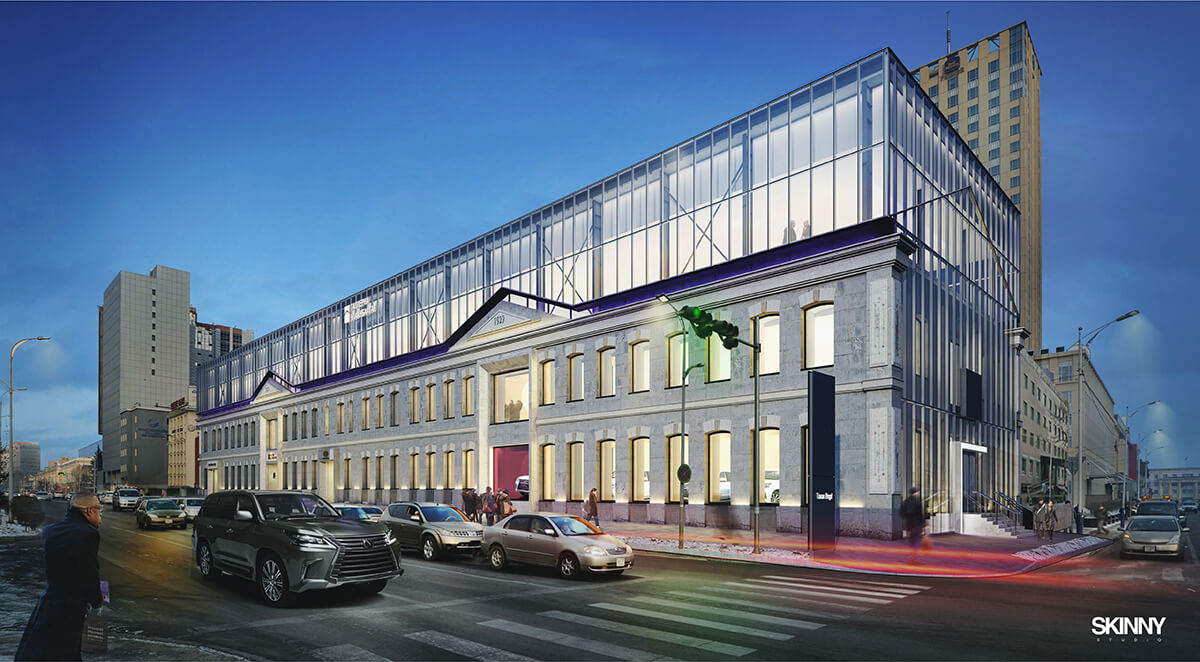 Хуучнаар Хэвлэх үйлдвэрийн барилга нь хотын өнгө үзэмжид чухал ач холбогдолтой бөгөөд энэхүү барилгын архитектур төлөвлөлт нь хотын иргэн бүрийн хүлээлт байсан юм. Таван Богд Групп энэхүү барилгын өнгө төрх, дизайныг шинэчлэх ажлын хүрээнд монгол дахь зураг төслийн компани, хувь хүмүүсийн дунд экстерьер зургийн уралдаан зарласны дагуу Skinny Studio оролцсон билээ. Дараах бүтээлээрээ Таван Богд Группээс хамтарч ажиллах санал авснаар экстерьер дизайны зураг төслийн хүрээнд сайжруулан амжилттай хийж дуусгалаа.