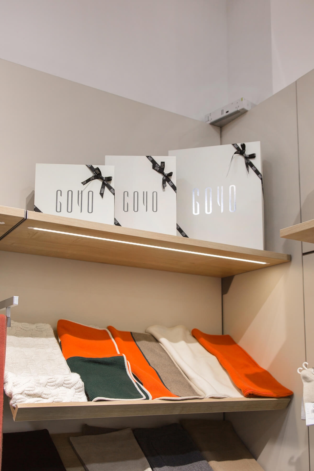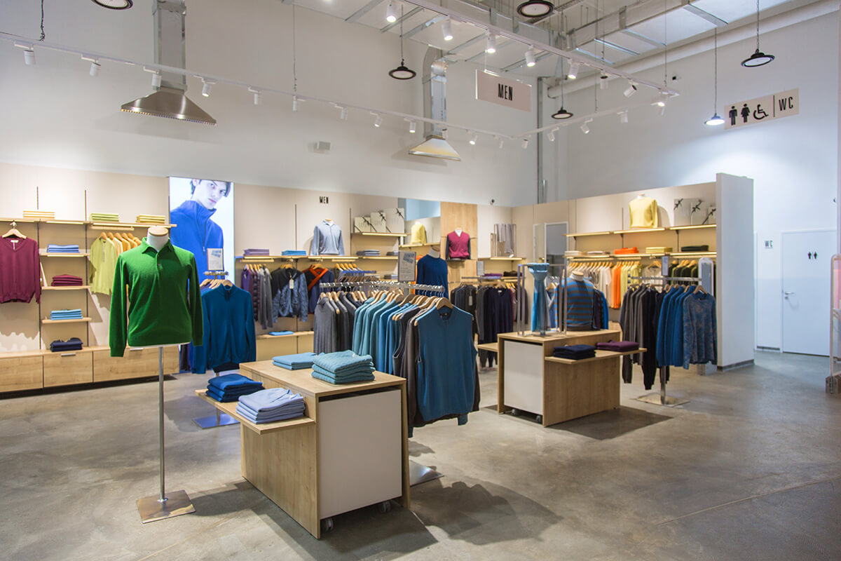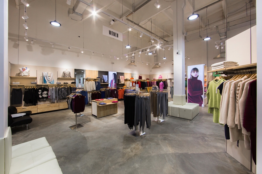 Үйлчлүүлэгчдэд бүтээгдэхүүн хүртээмжтэй харагдах талаас нь ажиллаж, орон зайн цэлгэр зохион байгуулалтыг үндсэн чиг болгон тус дэлгүүрийг интерьерийг бий болгожээ. Үүний зэрэгцээ хэт их чимэглэл, хэрэгцээгүй зүйлсээс ангижирч, зөвхөн бүтээгдэхүүний чанарт хэрэглэгчдийн анхаарлыг татах нь борлуулалтад чухал нөлөөтэй. Энэхүү шаардлагад үндэслэн тун энгийн, цэмцгэр орчныг энд цогцлоов.