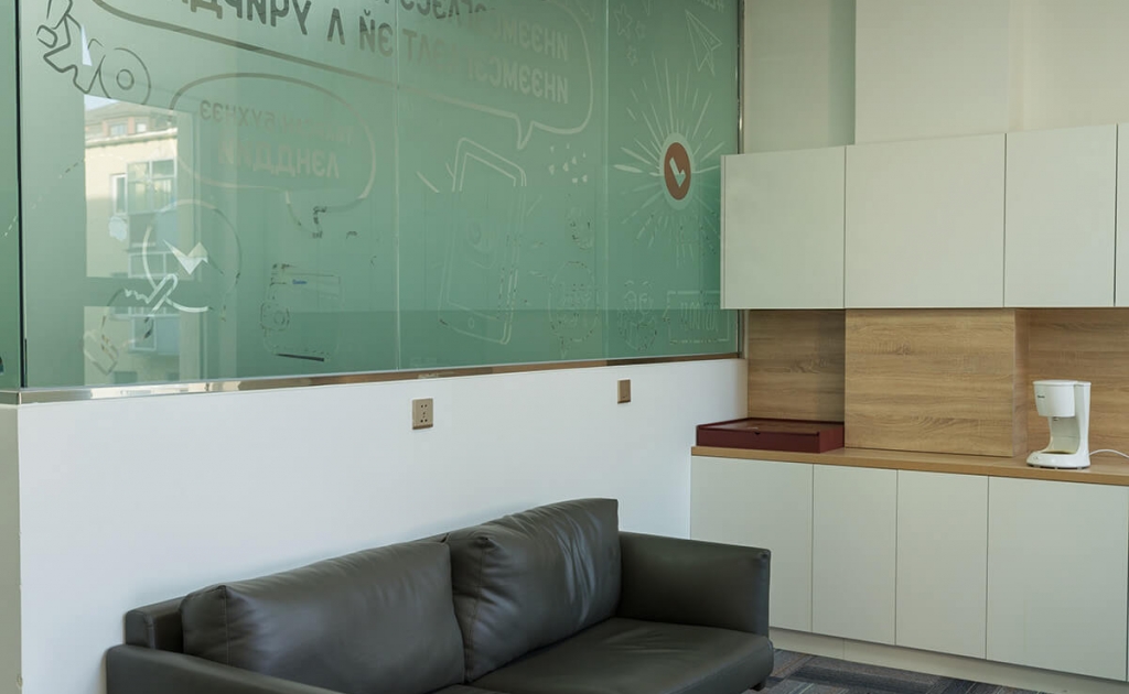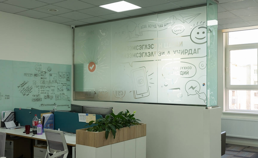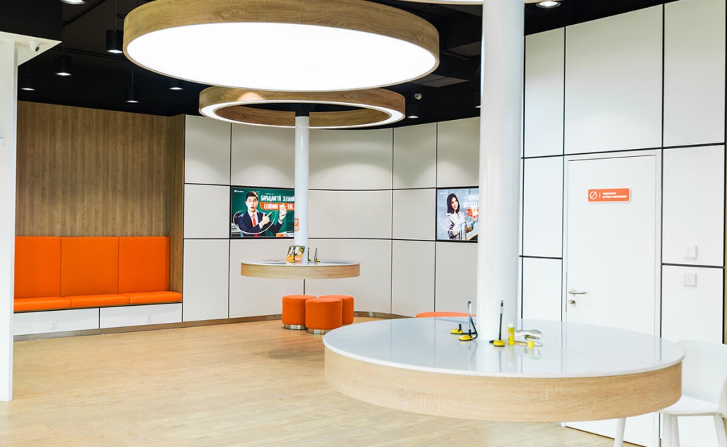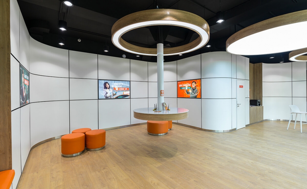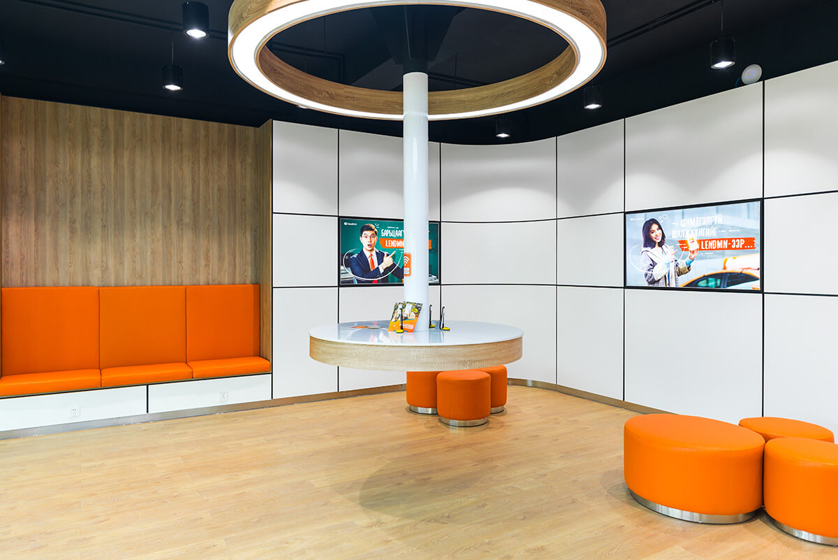 Агаарт тогтох мэт хөнгөн шийдэл нь орон зайг цэлгэр бөгөөд футуристик харагдуулдаг. Мөн хэрэглэгчдэд үйлчлэх хэсгийн орон зайн төлөвлөлтийг өнцөггүй давалгаалсан байдлаар төлөвлөж тохижуулсан нь орчин үеийн технологид суурилсан санхүүгийн байгууллагын үргэлж шинэчлэгдэж байх динамик шинжийг илтгэнэ.