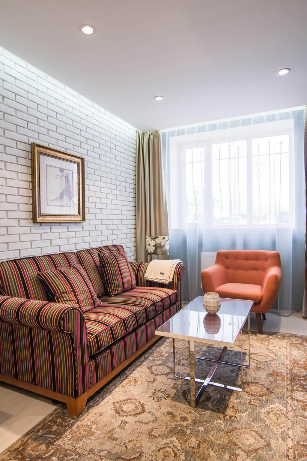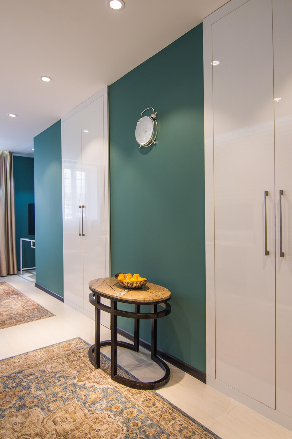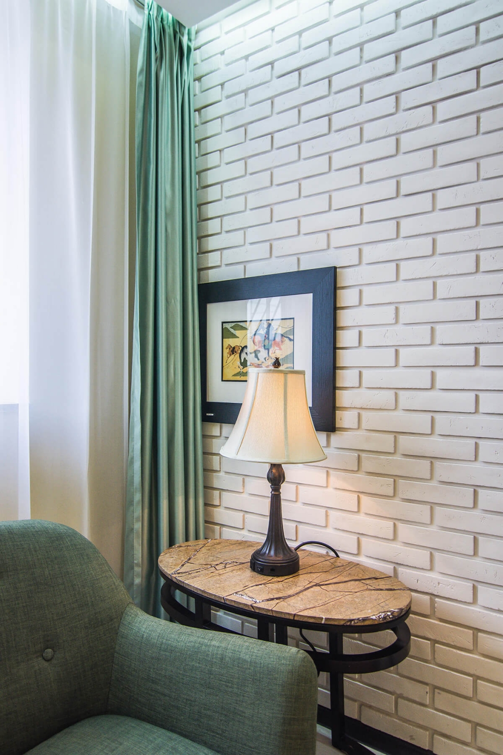 Бичлэгт орохын өмнөх бэлтгэл болон бичлэгийн дундуур амрахад зориулагдсан эл өрөө нь цэмцгэр бөгөөд тохьтой. Интерьерийн цагаан суурин дээр тухайн үеийн тренд өнгөтэй  зөөлөн эдлэл болон чамин декоруудаар тун ч донжтой “тоглолт” хийсэн байна.
