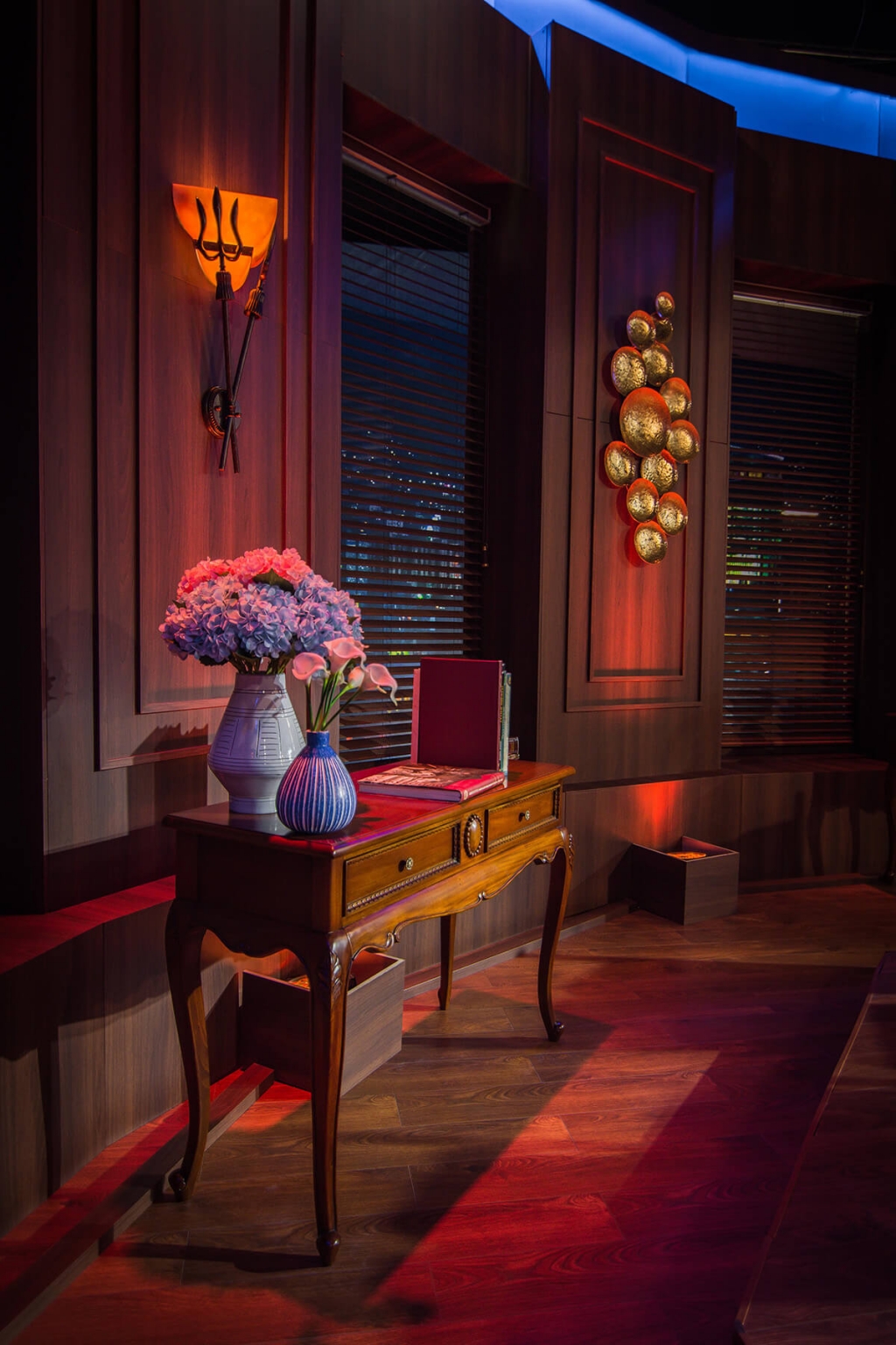 Тансаг классик тавилгуудтай хоршин хүчирхэг, нууцлаг байдлыг илтгэх өнгө болон материалын сонголт. Сүрдмээр харагдах хэрнээ хүн бүрд нээлттэй байлгахаар орон зайн төлөвлөлт хийгдсэн байна. Мөн телевизийн нэвтрүүлэгт зориулан зассан тайзан дээр бичлэг хийгдсэн бус харин ч маш бодитой харагдаж байсан нь интерьер заслын баг чадварлаг ажилласныг илэрхийлнэ.