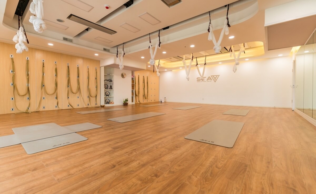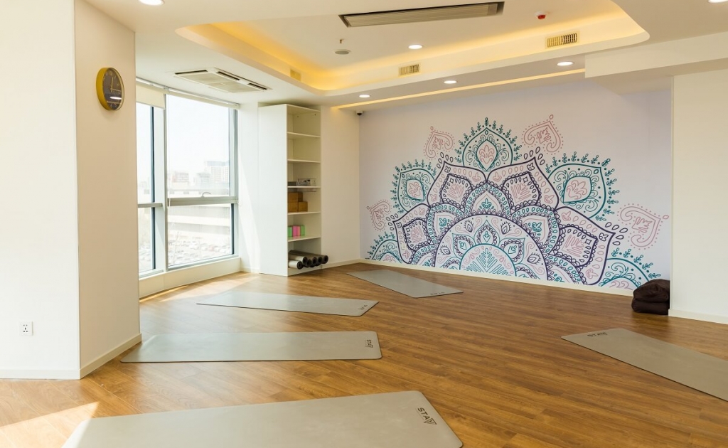 Дэлхий дахинаа йоганы төвүүдийн интерьерт аль болох дулаан шар өнгө, байгалийн материалууд, бүдэг гэрэл ноёлсон байх нь элбэг. Эдгээр элементүүд нь нөхөрсөг өнгийг бүрдүүлдэг ба сэтгэл санааг тайвшруулах, бие махбодыг амраах үйлчлэлээрээ бусад интерьерийн эдлэлээс ялгардаг юм.